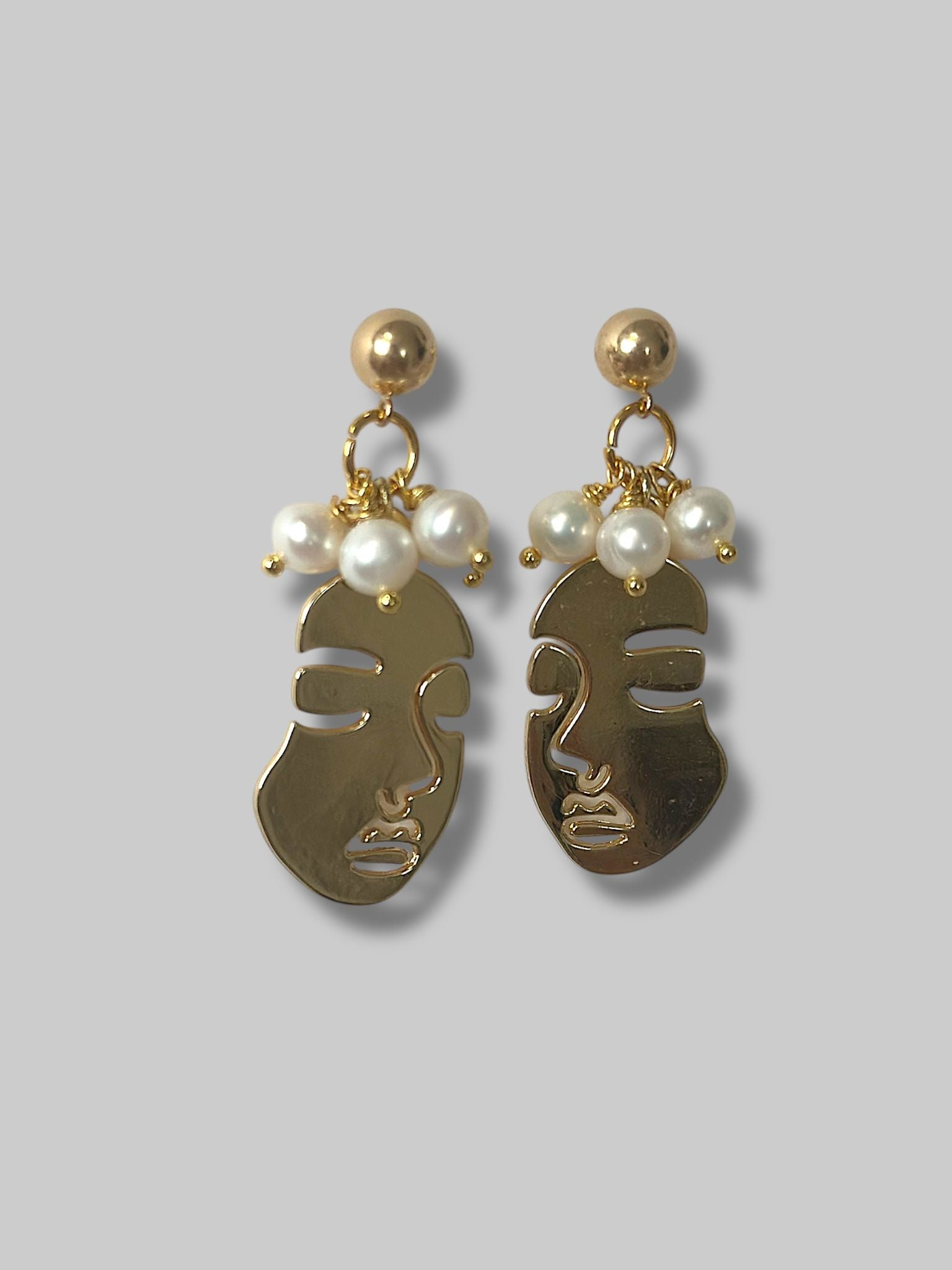 Gold plated, non tarnish con cara de mujer y perlas de agua dulce